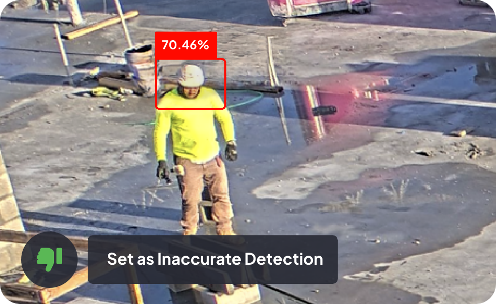 Unlike static models, TrueAI uses a feedback loop that lets users flag inaccurate detections, making the system smarter every day. Every shift makes TrueAI PPE smarter—and your site safer.